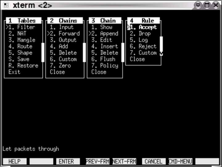 As you can see from the screenshot, it is able to handle all iptables functionality, including filtering, mangling and nating. It is also able to handle routing tables and bandwidth shaping and to save and restore rulesets. You can add new rules directly into the currently running iptables script easily, and handle all of the different tables. Including adding and removing custom chains.