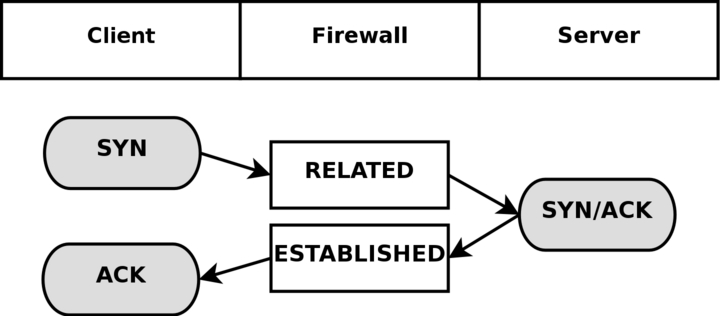 The solution to this problem is to add a special helper to the connection tracking module which will scan through the data in the control connection for specific syntaxes and information. When it runs into the correct information, it will add that specific information as RELATED and the server will be able to track the connection, thanks to that RELATED entry. Consider the following picture to understand the states when the FTP server has made the connection back to the client.